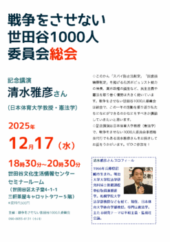 【戦争をさせない世田谷1000人委員会】12.17総会・記念講演のご紹介