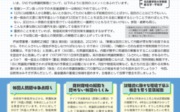 新しいチラシ「どうかんがえる? 衆議院解散総選挙2026」のデータを順次公開していきます。印刷・発送を行う時間的余裕がないため、お手元で印刷してご活用ください。よろしくお願いします。 [続きを読む]
